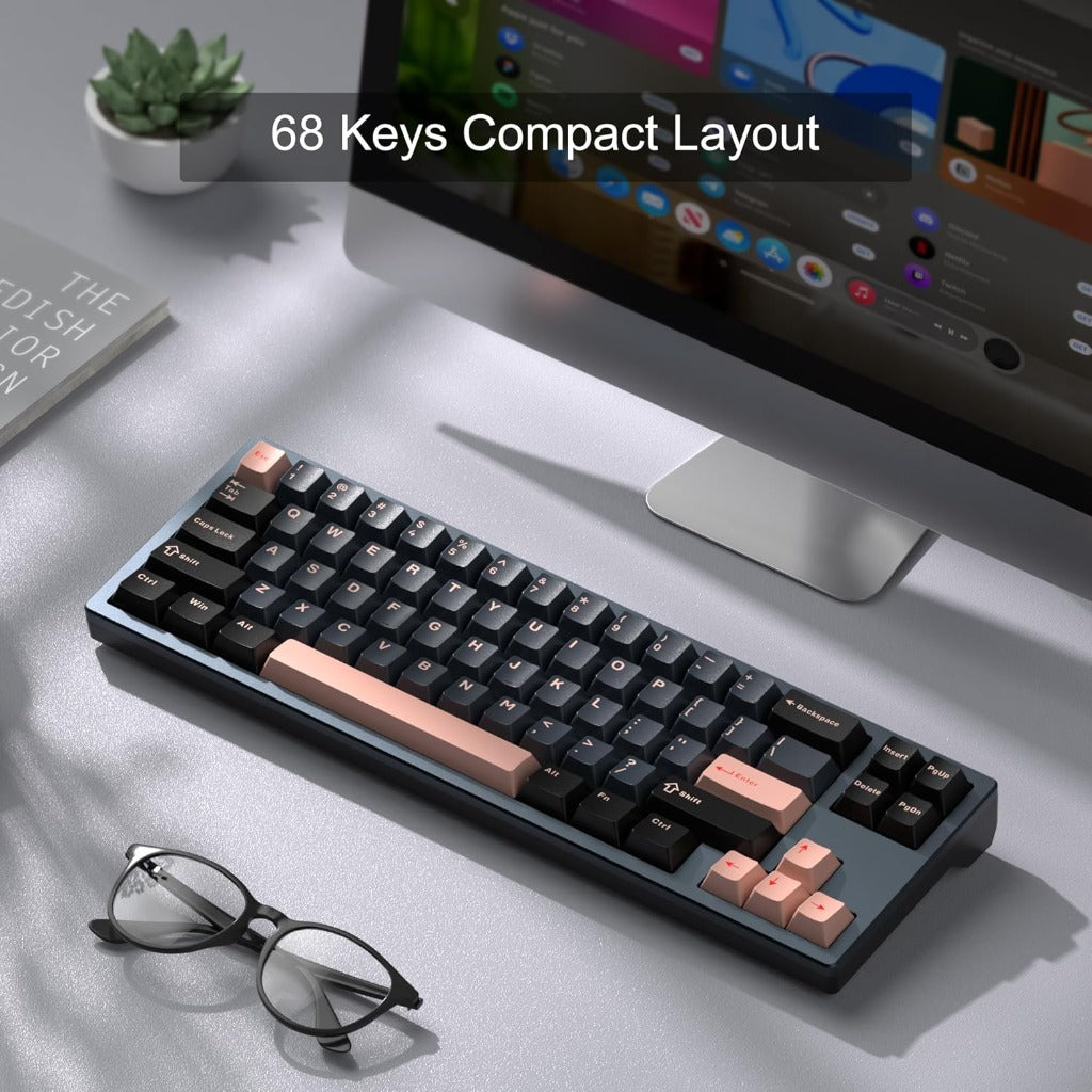 We bought this keyboard for my son since he likes to play his PS5 with a keyboard and mouse and it has worked out really well. He was excited as soon as he plugged it in and started clicking away. The keys feel responsive and have that nice click sound you expect from a mechanical keyboard. The LED backlight gives it a cool look without being over the top and the compact size makes it easy to fit on his desk alongside his other gaming gear. He has been using it a lot and so far it has held up with no problems.